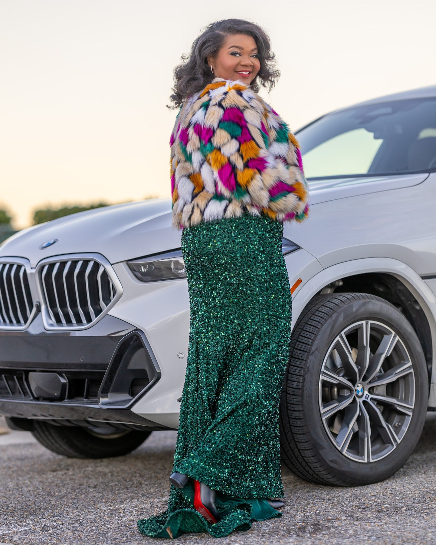 • Details: Stretch sequin prom gown, form-fitting silhouette, floor length skirt with train, off-the-shoulder bodice with sheer sides, plunging neckline with sheer mesh insert.
